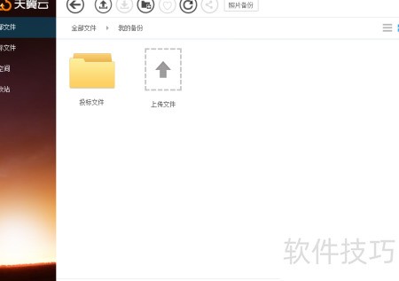 1、 进入天翼云首页,点击上传文件,选择需备份的文件即可,操作所示。