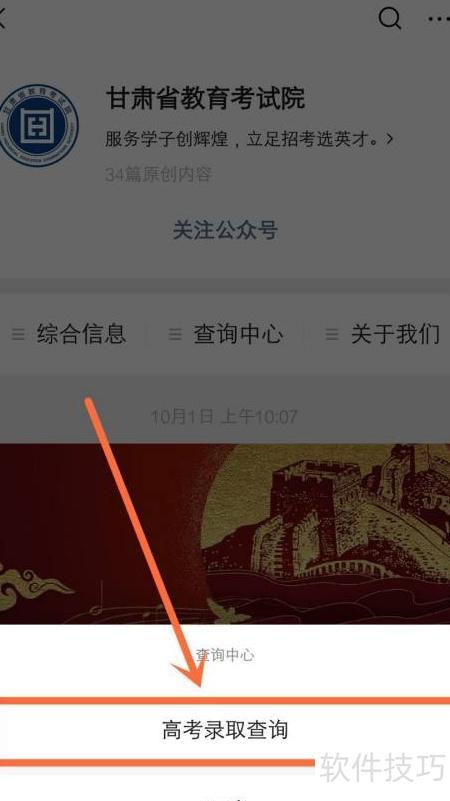 3、 输入甘肃省教育考试院,点击其公众号图标进入即可。
