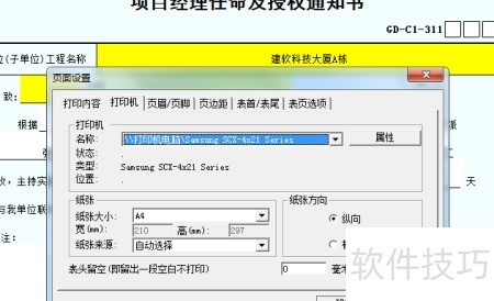 7、 填写完表格后,点击工具栏中的打印按钮,进入页面设置进行相关配置,完成后即可直接打印。