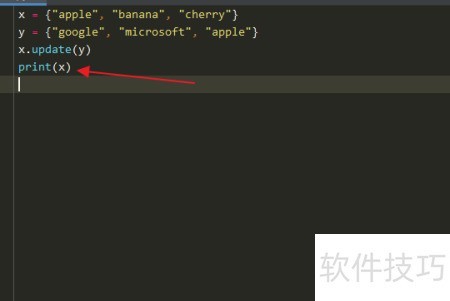 5、 输入x.update(y)后按回车键确认执行操作。