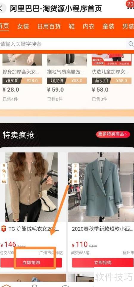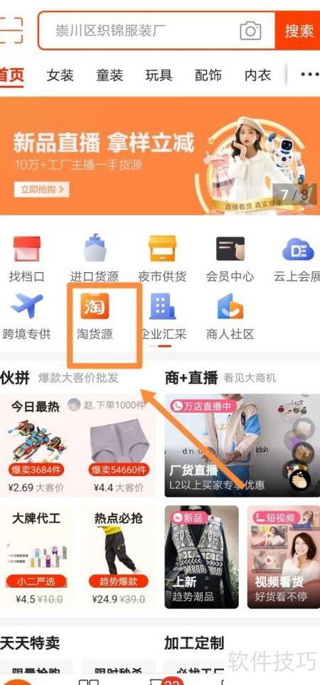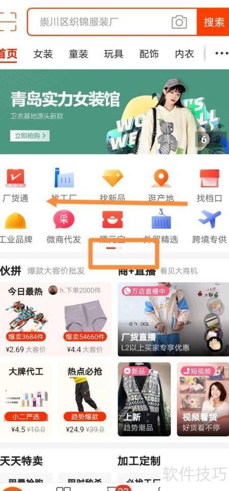 1、 滑动首页中部菜单栏左侧即可打开阿里巴巴