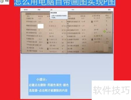4、 选择工具栏中油漆桶图标的功能,接着点击下方类似油漆刀的。用该选取器在周围区域取色后,点击需修改的内容框,使其颜色与周边背景一致,实现视觉上的统一。