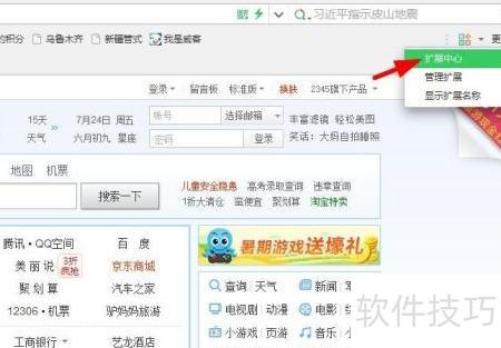 1、 点击右上角扩展中心图标,所示