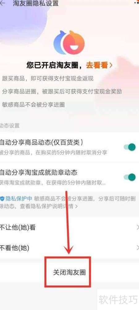 4、 点击关闭淘友圈功能。