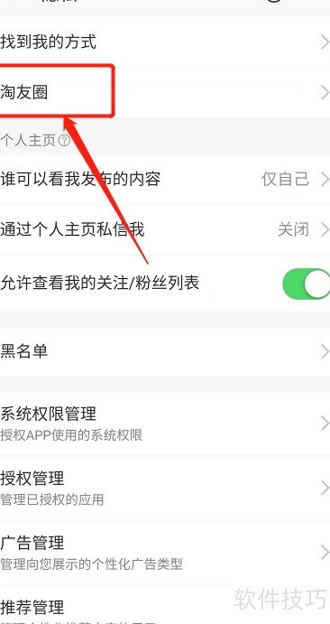 6、 进入隐私设置,开启淘友圈功能。
