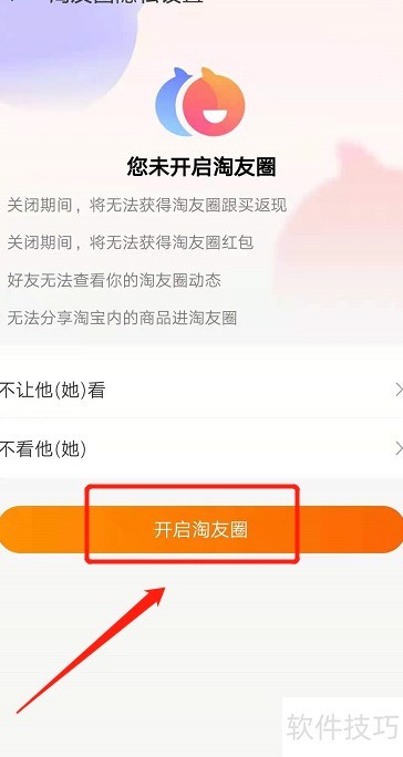 8、 点击页面按钮开启淘友圈功能。