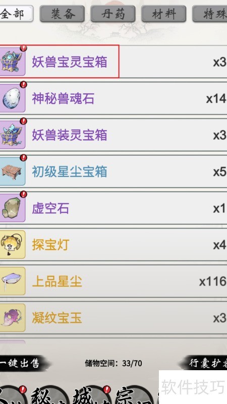 3、 打开行囊,点击妖兽宝灵宝箱即可。