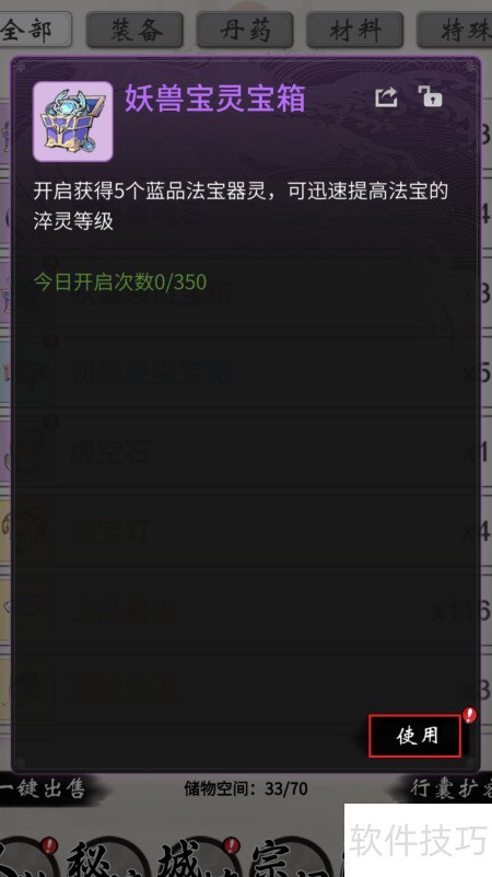 9、 开启妖兽宝灵宝箱,点击使用按钮即可。