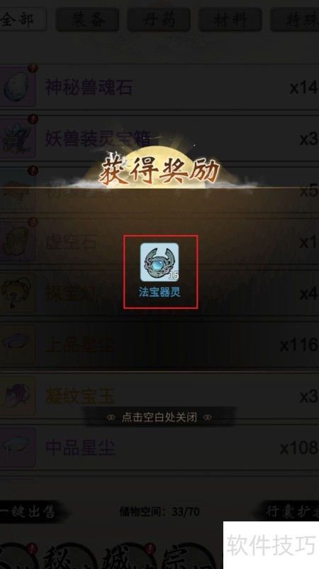 5、 获取法宝器灵奖励,妖兽宝灵宝箱开启方法已全部分享完毕。