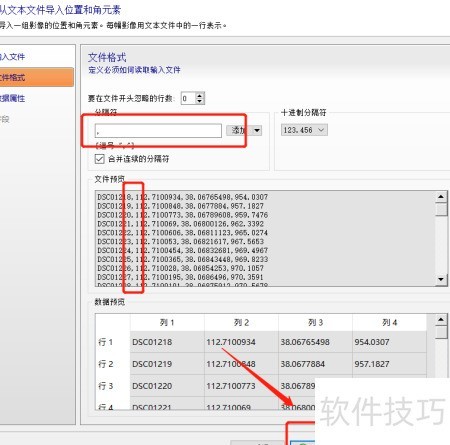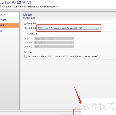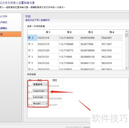 6、 在最后的界面中,将角色与POS信息进行匹配,确保影像参考对应照片名称,其他经纬度数据准确对应。设置完成后,点击右下角按钮,即可顺利完成影像POS信息的导入,具体操作所示。