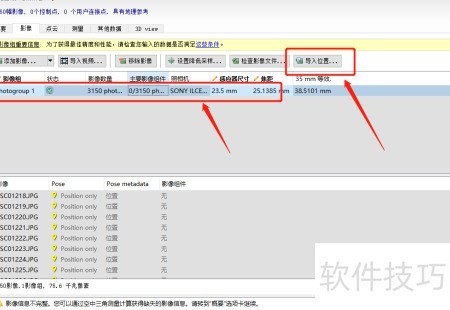 1、 在CC主界面选择需导入POS数据的影像组,点击右上角导入位置按钮,操作所示。