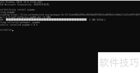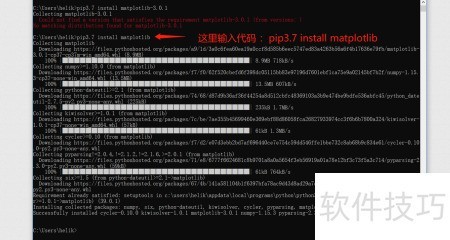 8、 安装成功后即可正常使用matplotlib。若要安装其他模块,只需将命令中的模块名替换为目标模块即可。例如输入:pip install pygame,便可安装pygame模块,操作方式与安装matplotlib相同。
