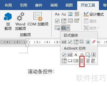 在Word 2016中,可通过开发工具选项卡插入多种ActiveX控件。下面介绍如何在文档中添加滚动条控件,以实现特定的交互功能,操作简便,适合需要动态调节内容的场景。