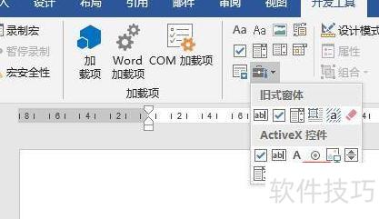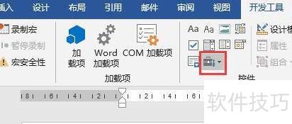 2、 在菜单栏选择,启用功能区后点击控件组里的旧式工具按钮。