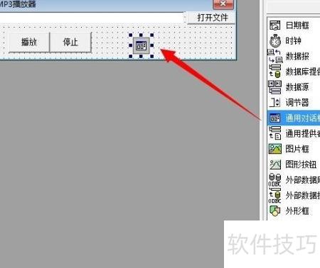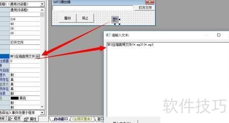 8、 打开文件时,过滤器必不可少。选中通用对话框,在属性中配置过滤器,使其仅显示*.mp3格式的文件,便于快速筛选所需音频文件。
