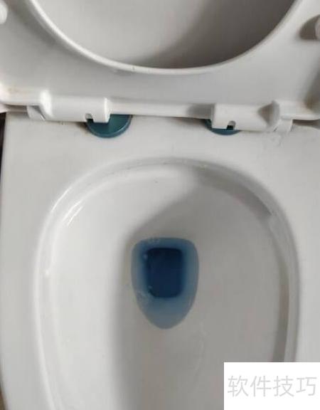 2、 打开马桶盖,倒入适量淡蓝色洁厕液,具体操作所示。
