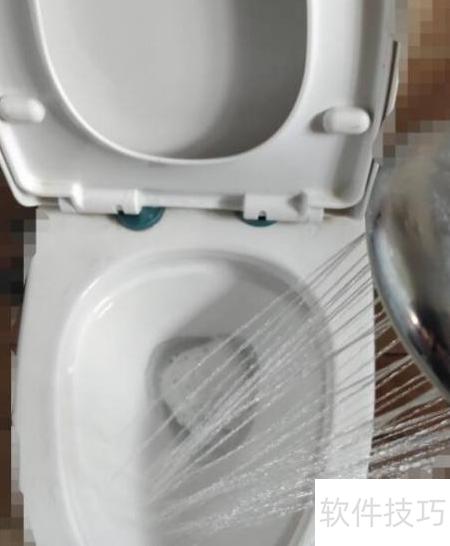 4、 用水冲洗马桶内壁,建议用淋浴喷头仔细冲刷边角,能有效清除残留污渍。