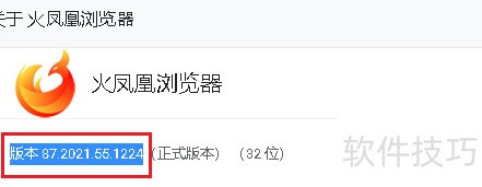 3、 此处可查看火凤凰浏览器的版本信息,示例版本为87.2021.55.1224。