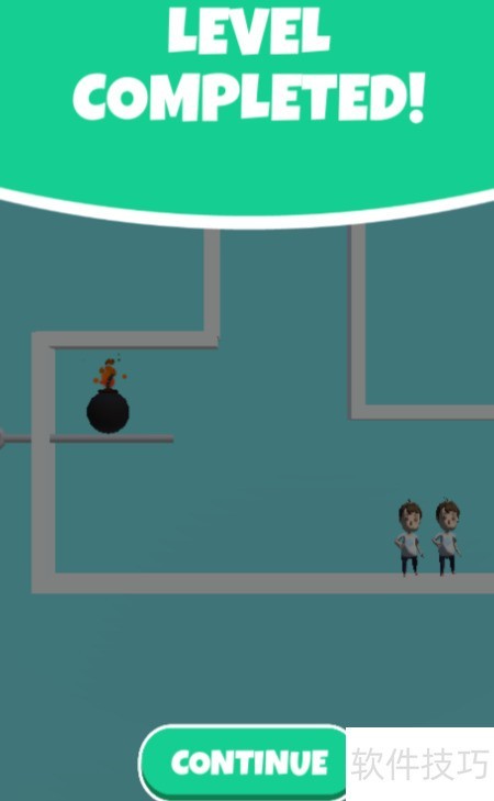 4、 屏幕上出现继续按钮,点击即可完成通关。