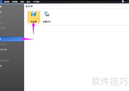 1、 通过电脑浏览器搜索并下载该软件到桌面,运行CAD编辑器后,在主界面选择文件菜单,点击左侧批处理选项,再点击右侧的批处理按钮即可。