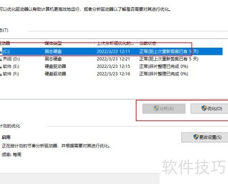 3、 选择目标硬盘,进入驱动器优化界面,点击右下角的优化按钮开始操作。