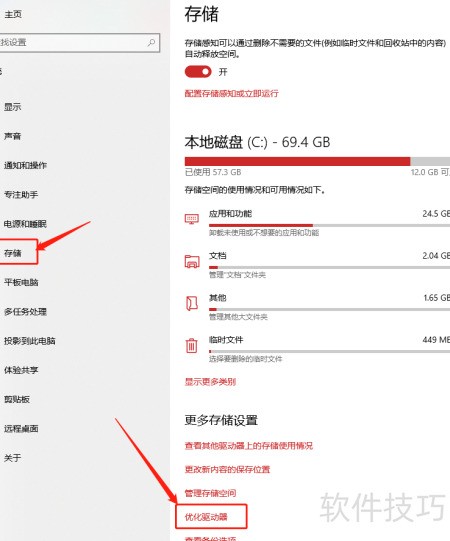 2、 在左侧菜单的存储类别中选择优化驱动器。