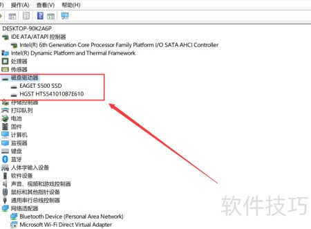 8、 进入设备管理器,展开磁盘驱动器,定位目标硬盘。