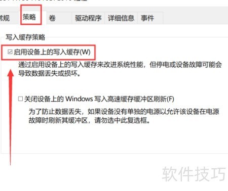 9、 查看属性,进入策略设置,启用设备缓存选项。