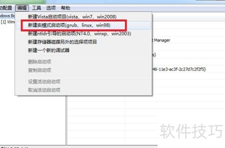 8、 通过百度搜索bcdtool,下载后解压并运行软件,进入编辑菜单,创建新的实模式启动项,支持grub、linux或win98系统。