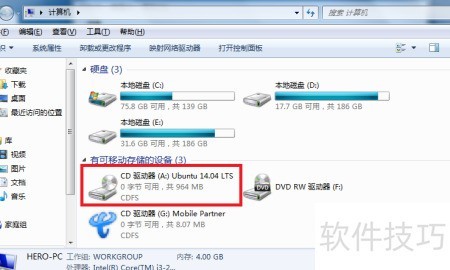 13、 检查电脑是否多出一个Ubuntu系统盘。