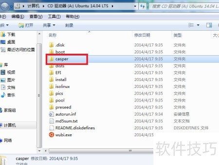 15、 将Ubuntu光盘中casper文件夹复制到系统磁盘指定位置即可完成操作。