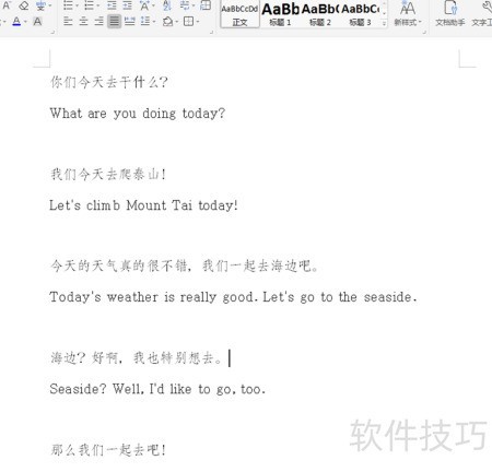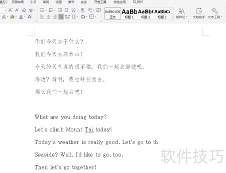 1、 打开Word文档,可见中文在上、英文在下。本次学习目标是将其调整为中文与英文交替排列的格式,即一行中文紧接一行英文,使文本结构更清晰有序。