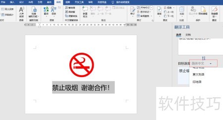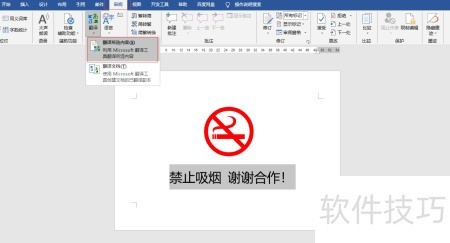 2、 点击审阅选项卡,选择翻译功能中的翻译所选内容。