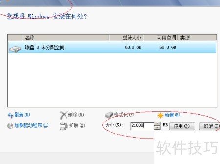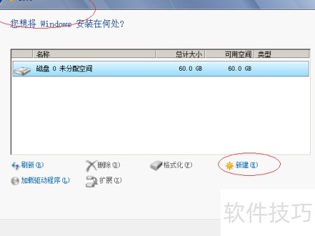 3、 打开安装界面后,选择驱动器选项(高级),点击新建创建分区,按需设置大小后,确认并点击下一步继续安装操作。