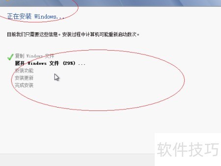 4、 所示,系统显示正在安装Windows…界面,安装过程需提供相关信息,期间电脑可能会多次自动重启。