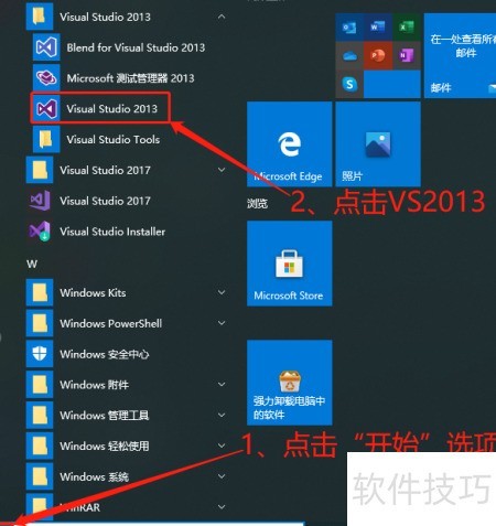1、 点击电脑左下角开始按钮,然后选择VS2013程序。
