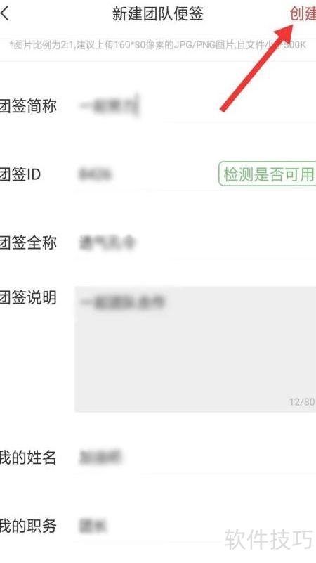 6、 进入新建团队便签页面,填写信息后点击创建即可完成。
