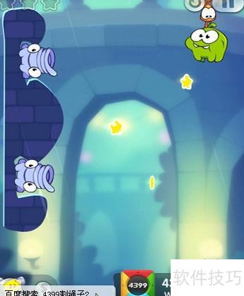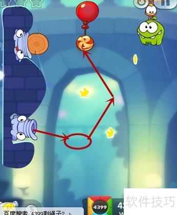 5、 投掷时应瞄准底部的星星,让糖果刚好触碰并反弹,利用回弹动作迅速收集第二颗星星。