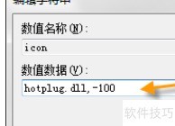 13、 双击Icon项,将hotplug.dll,-100填入数值数据栏中。