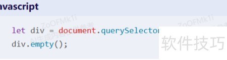 2、 empty() 函数用于清除节点内的全部子元素,包括内容、文本及其他嵌套结构,执行后仅保留该节点本身,其内部所有内容均被移除。