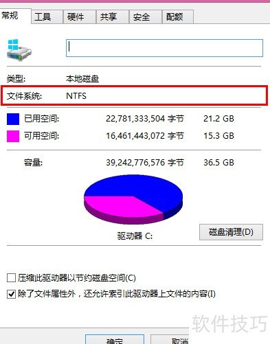 6、 Windows 8采用NTFS文件系统,日常使用不易产生碎片,因此可关闭磁盘碎片整理功能。右键点击驱动器选择属性,确认其为NTFS格式即可进行设置。