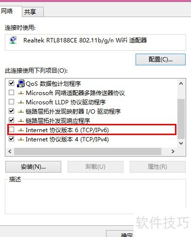 5、 右键任务栏网络图标,进入网络和共享中心,打开适配器设置,找到并取消勾选IPv6协议。