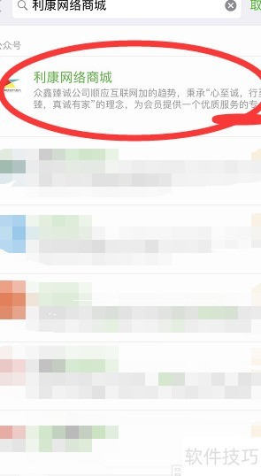 4、 以利康网络商城为例,输入关键词利康网络商城,点击选择并确认后进行搜索操作。