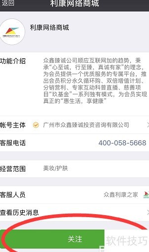 3、 进入公众号并点击关注即可。
