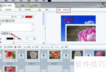 4、 点击动态文本,可在图片上添加文字,支持调节字体大小、阴影效果,设置入场与退场动画及循环播放时间。