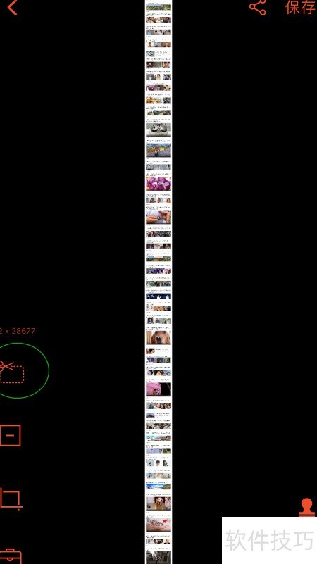 3、 可根据需求点击左侧裁剪区域,自由选取所需内容,编辑完成后点击右上角保存按钮,选择保存至相册,随后即可在相册中查看生成的长图。