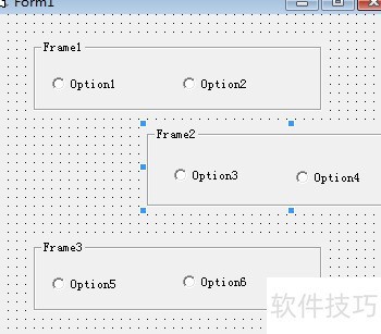 4、 在frame1上绘制单选按钮时,必须通过代码添加,不能直接双击工具箱控件进行操作。