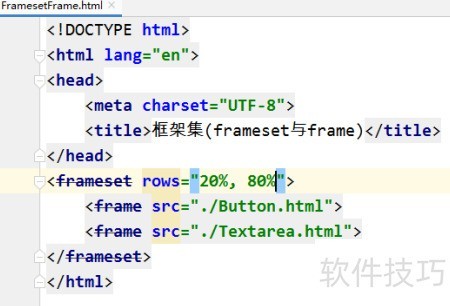 1、 创建一个名为 FramesetFrame.html 的文件,具体内容示例所示。