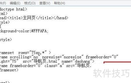 6、 一个无滚动条、不可调整大小且无边框的框架,高度设定为75像素,其源文件指向导航页.html,并命名为daohangye,用于在网页中嵌入独立的导航内容区域,实现页面局部更新与模块化布局功能。