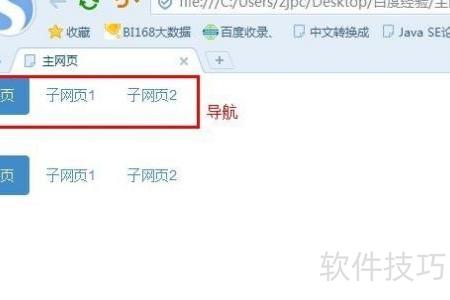 15、 将所有创建的txt文件另存为.html格式,双击打开主页面并查看变化,点击页面上的导航栏目,可观察到下方内容随之刷新更新。